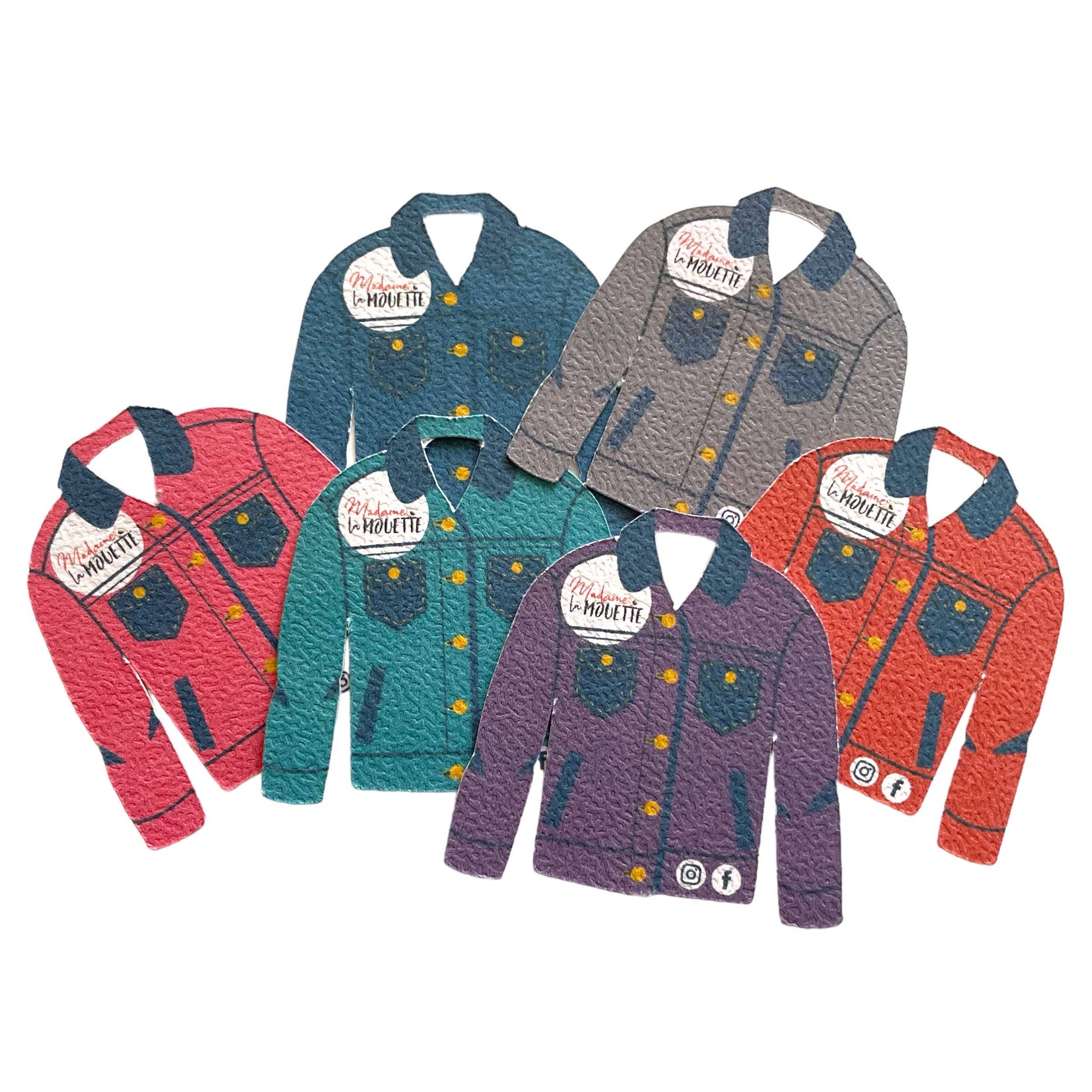 Illustration af Madame la Mouette, nåle præsenteret på en smuk akvarel pap (genbrugspapir), der repræsenterer en denimjakke - tilfældig farve se foto.