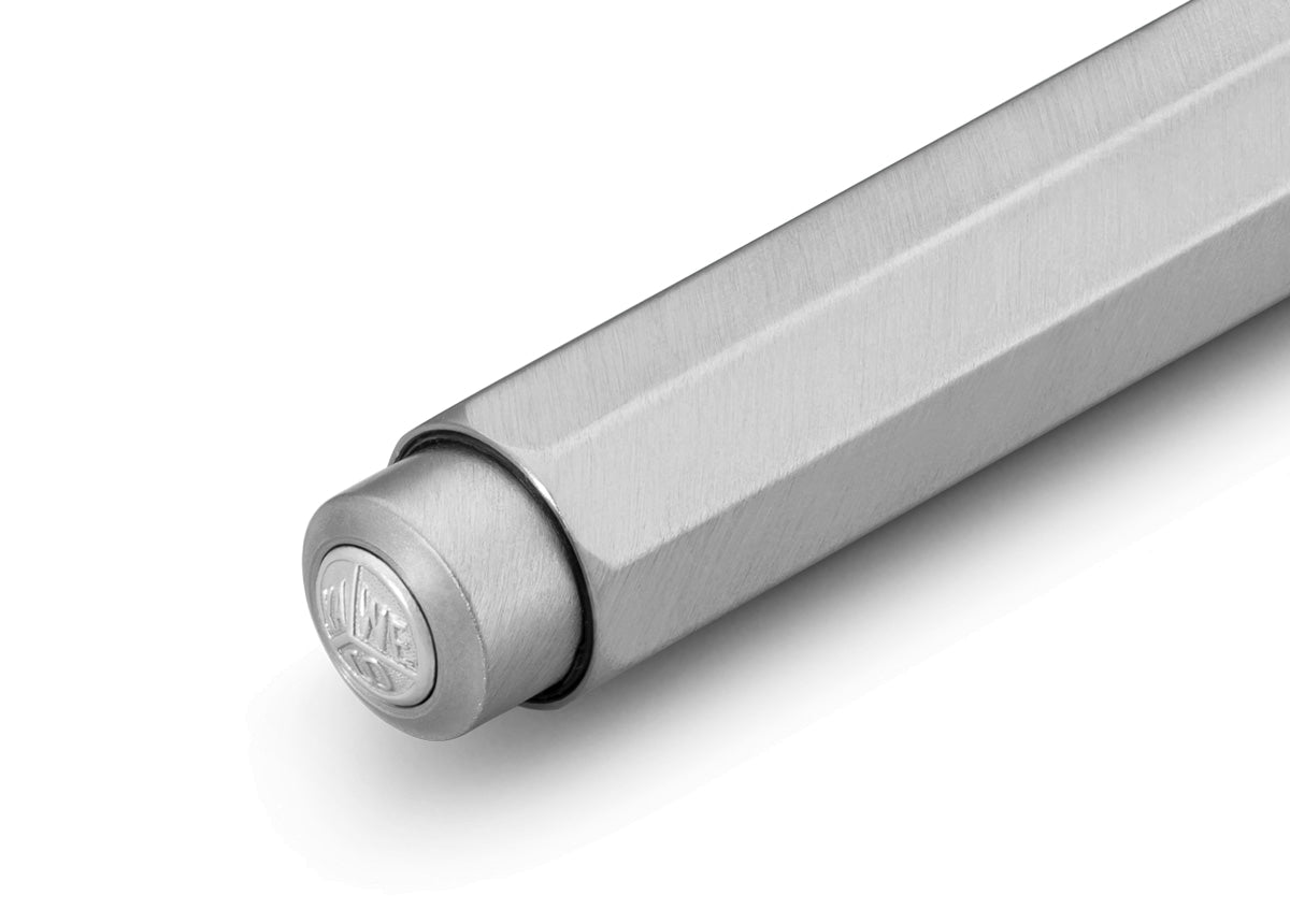 Det rå rustfrie stål har en børstet finish, der giver den et strejf af elegance. På grund af det rustfrie ståls tunge vægt trykker kuglepennen let mod papiret, så du kan skrive i særlig lang tid og med komfort.